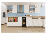 The Candy CCVB30UK/1 is a sleek and stylish 30cm built-in wine fridge designed to hold up to 20 wine bottles, offering a perfect solution for wine lovers who desire both functionality and elegance in their home. This freestanding model is ideal for placement in various kitchen or living room settings, with a modern black finish and transparent glass door, allowing a clear view of your wine collection. The fridge features a single temperature zone, ensuring your wines are stored at the ideal temperature, and operates with a fan-based cooling system that helps maintain consistent temperatures across all bottles.