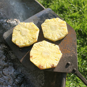 Our fire pit paddle is made from steel with a hardwood handle, complete with a hanging ring for easy storage. Before you use it, please remove the protective wax coating by firing up your fire pit and sitting the paddle in the flames. After this, season with a light coating of a neutral cooking oil and then it’s ready to help sauté, grill, flip and serve.