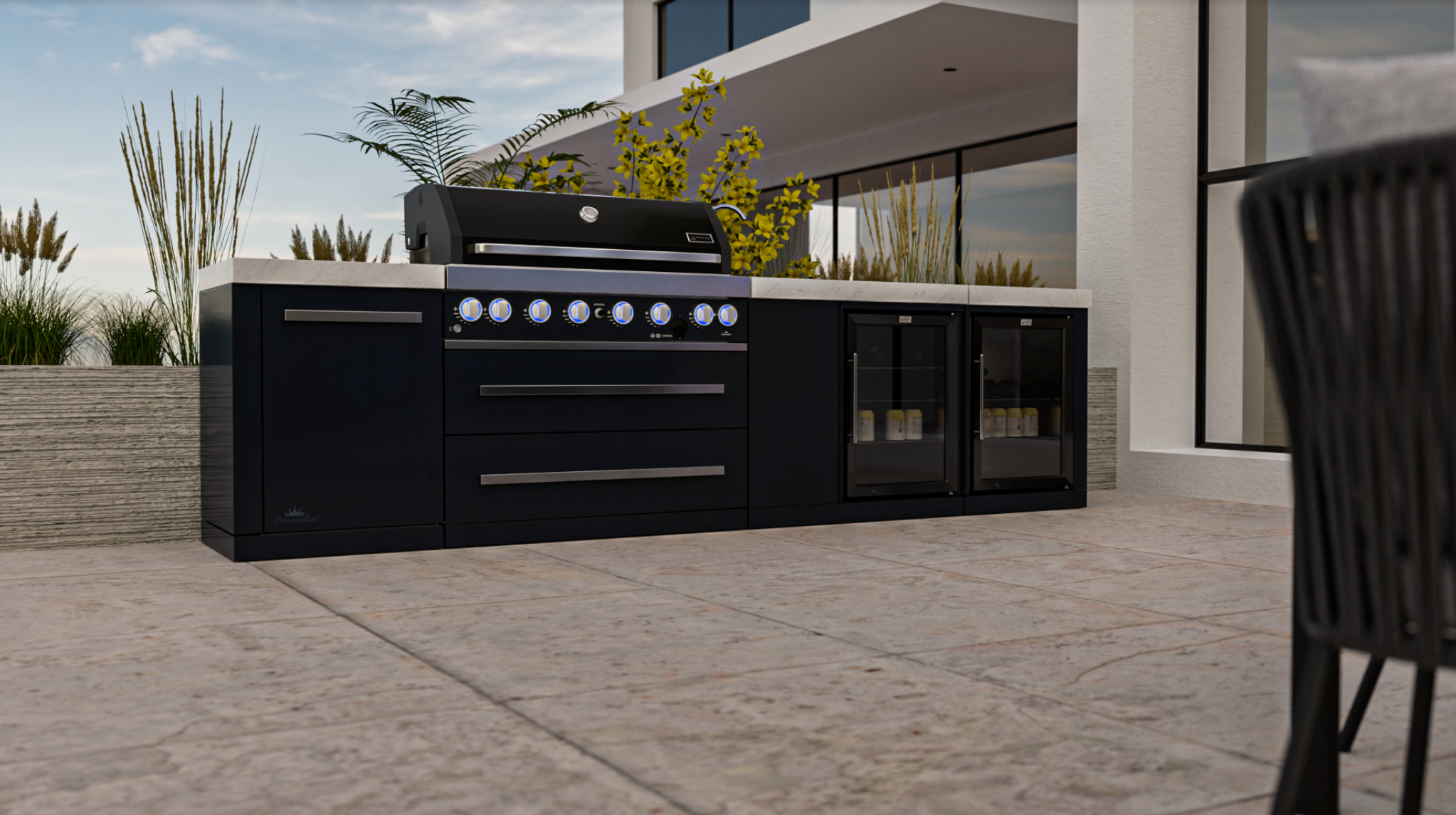 Mont Alpi Outdoor Kitchen Black, 6 Burner, Fridge, Sink and Weather Cover - 3.4m