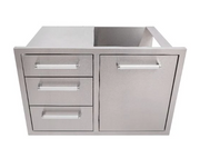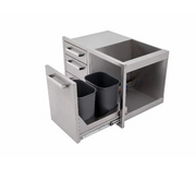 • Full 304 grade stainless steel construction this triple drawer unit and waste bin allows you to construct a good sized storage area in your outdoor kitchen or built-in barbecue project.  Handy for storing bbq tools and accessories and the waste bins ensure your worktop and preparation area will remain clean and tidy. Easy to fit, great build quality and an attractive price.