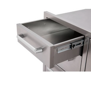 The Whistler Burford Built-In Triple Drawer and Waste Bin Unit provides three storage drawers, all soft closing, and a waste bin with two handy sized plastic bins, on a soft closing slide out base, all encased in a steel carcass.  It could not be easier to fit this handy storage system into your outdoor kitchen or built-in bbq project.  The fact it is made entirely from 304 grade stainless steel means it will not only look great but will last for years.  Current lead time 2 weeks from order.