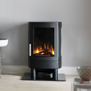 The incredibly realistic 3D holographic flame projection has 4 flame settings - high flame, medium flame, low flame and glowing embers. Our flame projection technology creates flames in the front, middle and back of the firebed which with the addition of the optional blue flame, gives greater ambience and realism. The crystal embers and ceramic logs provide a natural, realistic look to the stove.