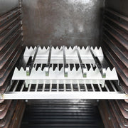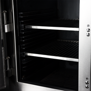 The Bertha is quick, easy, and clean to light using additive-free firelighters. The choice of wood or wood chips used will have a subtle but distinctive impact on flavour, and the same is true of the choice of charcoal too. Moreover, being closed, it allows the typical techniques of an oven such as baking from above, Smoking , Roasting, Grilling and Searing. Even though the chamber temperature of the Bertha obviously gets extremely hot, the fully insulated door and walls prevent heat from escaping into the kitchen and gives the chef a more pleasant working environment.