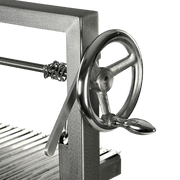- Wheel mechanism allows for effortless adjustment of the grill bed height, enabling precise temperature control for cooking with wood or coal.