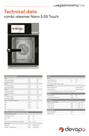 This Devapo Nano 5.05T "Plug & Play" Medium use, 5 x 1/2gn electric combination oven is ideal for smaller operators who want a compact sized combination oven but are restricted by size and services. It requires no water supply or drainage and has an inbuilt condense hood, inbuilt water softener and will run off a 13 amp 230v electrical supply, allowing it to be installed anywhere.