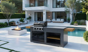 This premium outdoor kitchen offers a choice between a sleek, standalone design or additional thermo-wood side wings for added functionality. Built with both practicality and elegance in mind, it features a professional-grade gas grill and a structure that can be easily assembled by the customer.