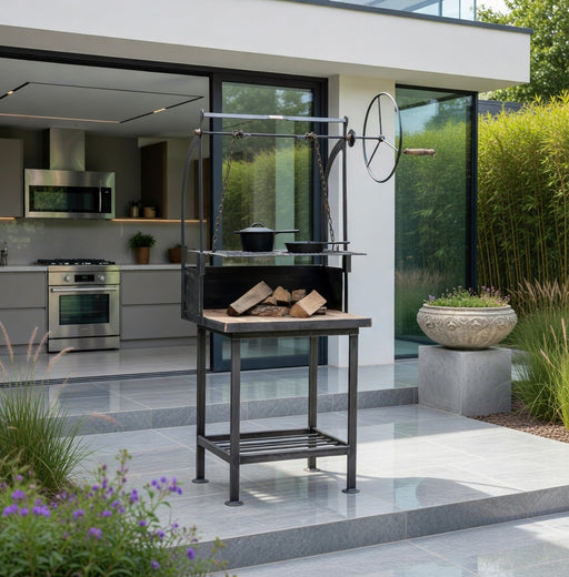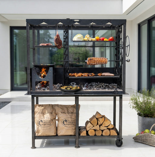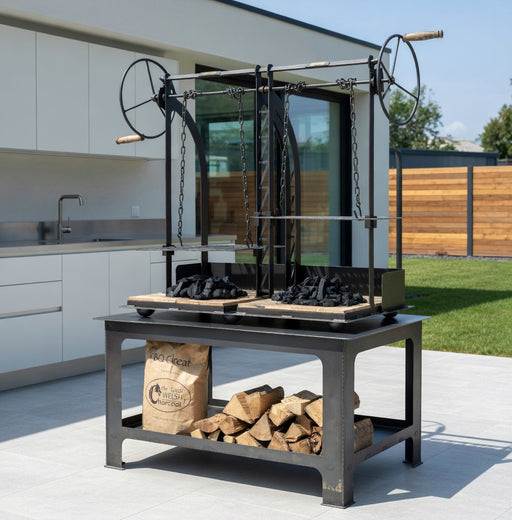 The Katherine Wheel is brand new to our BBQ collection and has a unique wheel mechanism to move the grill plate up and down according to the heat...