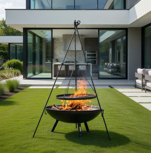 Ver todos los detallesTripod plus Plain Jane with Swing Arm BBQ Rack Fire Pit 90cm