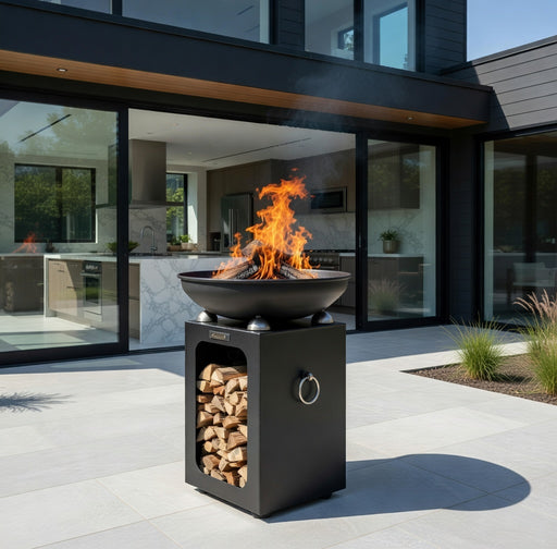Our Fire Bowl with Log Store is one of our bestselling taller fire pits. The bowl is positioned at a very comfortable height for cooking and und...