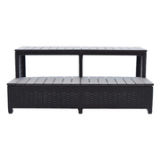 The Wicker Spa Step features double steps constructed of a slip resistant synthetic wood with an attractive wicker rattan finish along the border of the step. Multiple steps can be combined with our Square Spa Surround Corner Steps to create a wrap around effect around the perimeter of your spa.