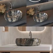 Introducing the exquisite Black Marble Effect Ceramic Sink Basin, designed to elevate the look and functionality of your bathroom. This high-quality wash basin is made from premium ceramic, offering both durability and style. The striking black marble effect finish gives it a luxurious, contemporary aesthetic, perfect for any modern bathroom, powder room, or cloakroom.
