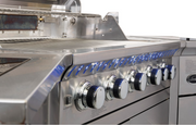 From its burners to its premium grilling features, this gas BBQ is ready for serious searing. This outdoor kitchen hosts five main burners, a sizzle burner and a rotisserie burner.