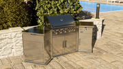 The Lifestyle Bahama Island is sure to stun. This outdoor kitchen is complete with two sliding preparation shelves, spacious cabinet storage and an integrated ice bucket.