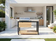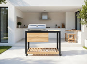 Crafted with premium solid teak and a matte black powder-coated aluminium frame, this grill trolley brings both elegance and durability.