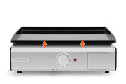 Entirely designed and produced in France , this Pro plancha is equipped with a high quality enameled cast iron cooking plate , guaranteed for 10 years. The excellent inertia of cast iron allows uniform heating of the plate and a stable and high temperature.