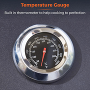 - High dome lid with thermometer and side vent