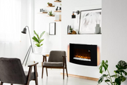 This Glasgow curved fireplace distributes a comfortable, warming heat to your living space without taking up crucial floor space thanks to its wall mounted design. The remote control allows you to adjust the temperature up to 2000W, set your preferred mood lighting and brightness at the press of a button. Complete with pebble display and realistic LED flame effect, it provides the look and feel of a real fireplace. The lighting display can also be operated independently as a visual feature.