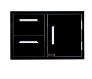 Constructed from 304 stainless steel, this door and drawer combo features durable double hinges and comes standard with paper towel dispenser inside right-hinged door as well as two sealed drawers.