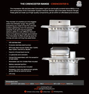 Transform your outdoor cooking experience with the Whistler Cirencester 6-Burner Gas Barbecue, a large, powerful, and stylish addition to any garden. Designed to handle everything from intimate family dinners to lively gatherings, this barbecue is built to impress with its robust features and premium materials.