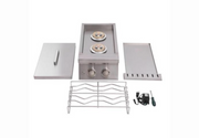 The Whistler Grills Burford Side Burner 3 is constructed from 304 stainless steel. This double side burner is styled around the Whistler Grills Prime 400 and 300 models, but will suit any outdoor kitchen installation. The Whistler Prime Built In Side Burner features two brass burners emitting 24,000 BTUs total. Two blue LED lights illuminate the ignition knobs. Durable 7.5 mm stainless grates can handle pots of any weight. Comes standard with stainless lid to help protect against the elements.