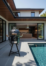 All kamados from YAKINIKU® have a luxurious black finish and are made with the best materials. A combination of extra thick ceramic and cordierite allows your Kamado to handle all weather conditions. The use of type 304 stainless steel provides the further heat-resistant finish. In short, with a Kamado from YAKINIKU®, you not only get a high-quality product, but you also give your garden or (outdoor) kitchen a luxurious look. The COMPACT is easy to extend with our extra raised grid that provides an extra 70% grilling surface. In addition to this accessory, the COMPACT can also be transformed into a pizza oven by means of the pizza stone in combination with the easy-to-use heat deflector. A heat deflector ensures that the food is not exposed to direct flame, so that ideal cooking can be achieved. If you want to achieve authentic Japanese cooking, use the Kamado in combination with the Teppanyaki plate. To prepare the ultimate taste sensation for your guests, finish your dishes by using the woodchipper. This allows you to add smoke wood without having to open the lid of the Kamado and thus lose heat. The access to the woodchipper is double insulated, so you can operate the Kamado without burning your fingers.