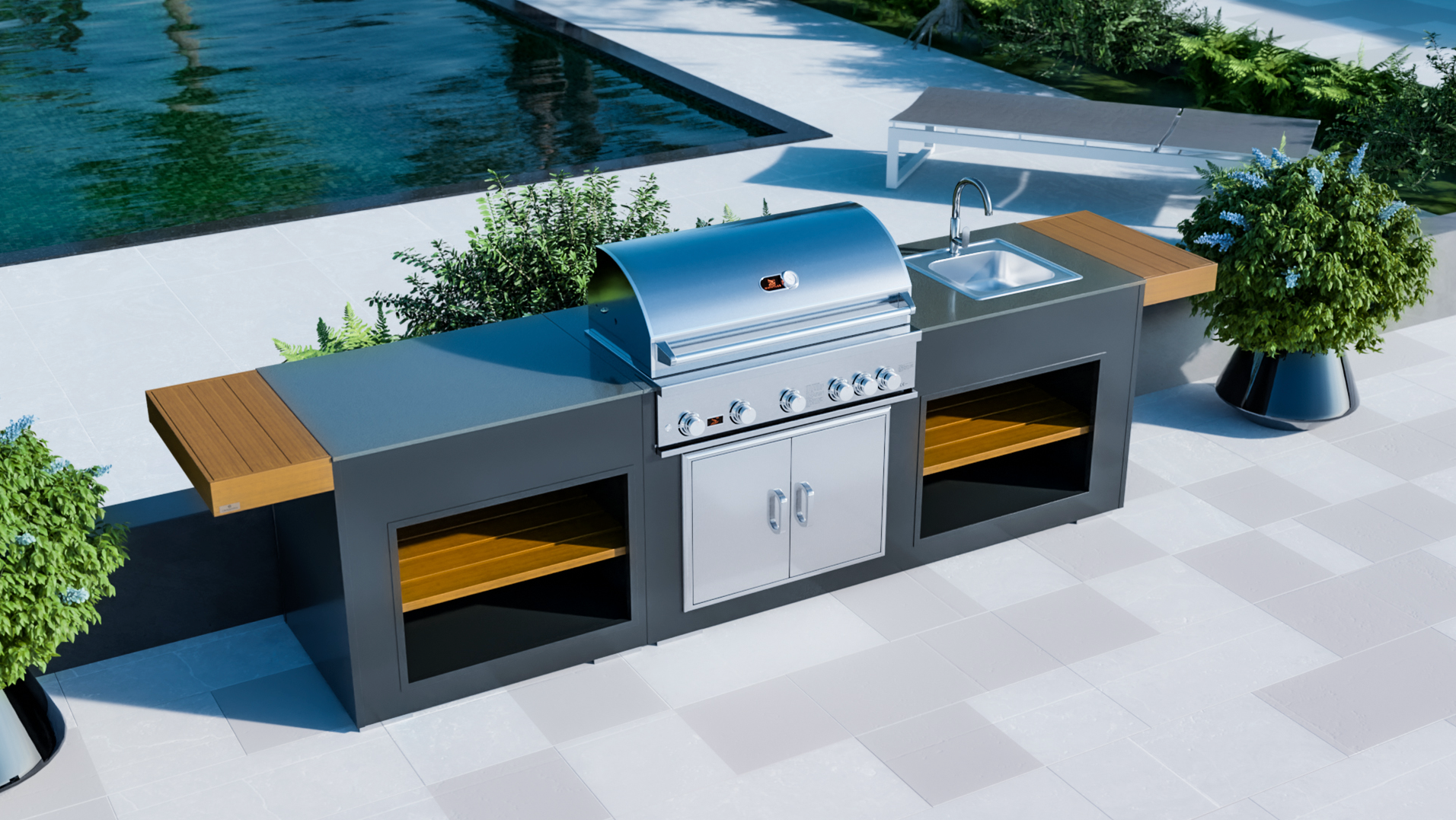 An upgraded version of the Rare model, the Medium Rare offers a complete outdoor kitchen setup, including: