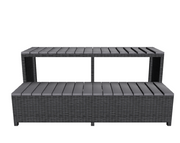 The Wicker Spa Step features double steps constructed of a slip resistant synthetic wood with an attractive wicker rattan finish along the border of the step. Multiple steps can be combined with our Square Spa Surround Corner Steps to create a wrap around effect around the perimeter of your spa.
