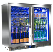 Equipped with white and blue LED lights which can be changed at the flick of a switch, a door lock to ensure the contents remain secure and Danfoss electronic controller for temperature control.