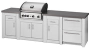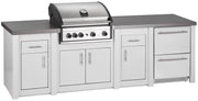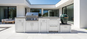 Grandpro by Stoll Aluminum Outdoor Kitchen Pro Elite, Green Egg, and Double Drawer Fridge | 3M