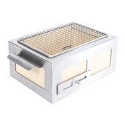 The Small Konro Hibachi grill is in a brushed stainless steel finish, with stylish curved handles. Offered in a very limited quantity at a very special price, its a great grill to gift yourself or a loved one
