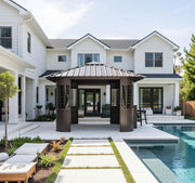 This Canadian Spa Frazer gazebo creates a sheltered area for your hot tub to use in all weather situations