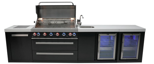 Afficher tous les détailsMont Alpi Outdoor Kitchen Black, 6 Burner, Fridge, Sink and Weather Cover - 3.4m