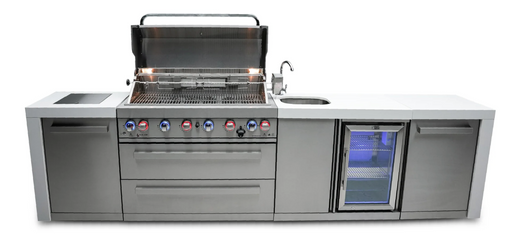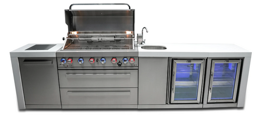 Afficher tous les détailsMont Alpi L Shape Outdoor kitchen 6-burner Deluxe Island + Fridge + Weather Cover - 2.4M