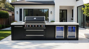 Mont Alpi Outdoor Kitchen Black, 6 Burner, Fridge, Sink and Weather Cover - 3.4m