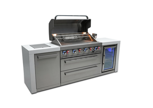 MONT ALPI 6-BURNER DELUXE ISLAND WITH FRIDGE CABINET The Mont Alpi 6-Burner Deluxe Island with Fridge Cabinet isn't just a grill—it's a fully eq...