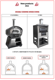 The versatile solution of two types of cooking: direct, indirect or both. The fire can be lit directly in the brazier inside the cooking chamber, or in the combustion chamber below . By inserting a grill into the cooking chamber itself, a second surface is obtained for the simultaneous insertion of multiple trays. The fire can therefore be lit directly in the cooking chamber or in the separate combustion chamber or simultaneously in both depending on preferences, with the advantage of keeping, in the latter case, the cooking surface hotter for longer.
