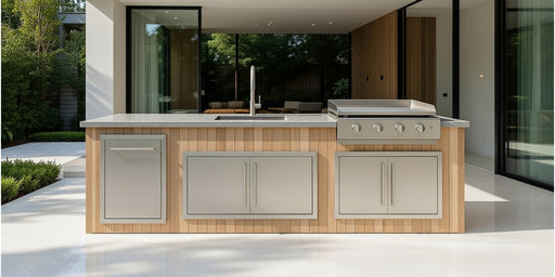 Afficher tous les détailsThe Alpha Forge Outdoor Kitchen Plancha Grill and Sink Station | 273cm x 60cm Light Oak Cladding