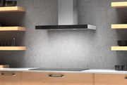 Crafted with stainless steel and black glass, this cooker hood is as visually stunning as it is functional. -