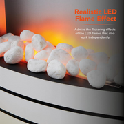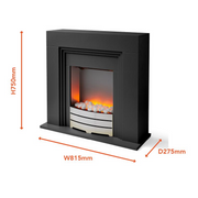 Add a stylish, contemporary focal point to your home with this Fireplace Suite. With a stylish black matte and chrome exterior, the fireplace is ideal for living rooms, dining rooms and larger bedrooms, and its realistic LED pebble flame effect can help you create the ideal mood lighting. A choice of 1kW and 2kW heat settings lets you find your preferred temperature to add warmth and ambience to your room whilst a safety cut-out system provides peace of mind when in use. With no assembly required, this fireplace makes for both a stylish and practical centrepiece for any room.
