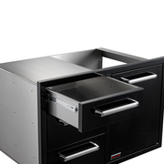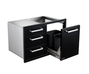Full 304 grade stainless steel construction this triple drawer unit and waste bin allows you to construct a good sized storage area in your outdoor kitchen or built-in barbecue project. Handy for storing bbq tools and accessories and the waste bins ensure your worktop and preparation area will remain clean and tidy. Easy to fit, great build quality and an attractive price.