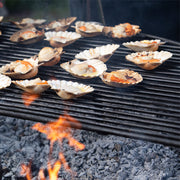 Our Half Moon BBQ All Bar Rack Collection is perfectly designed to sit atop our fire pits. The half moon shape allows you access to the fire to split the fire in two. Feed the fire from the open side to keep the fire burning to create hot embers. Using our Ash Rake pull across the hot embers under the BBQ rack for cooking. If you need more heat all you have to do is rake some extra embers over.