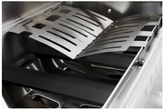 • Full width stainless steel catchment tray,  positioned at the front of the BBQ on Telescopic rails