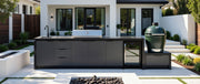 Create a premium outdoor cooking and entertaining space with the Cabinex Premium Outdoor Kitchen — a luxury, weather-ready setup designed to look stunning in the garden while staying practical for real UK conditions. With a fully weatherproof aluminium frame, waterproof PVC panels, and scratch/heat/UV-resistant porcelain benchtops, this outdoor kitchen is built for year-round use with minimal maintenance.