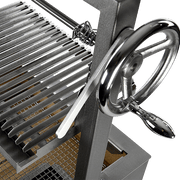 • Wheel mechanism allows for effortless adjustment of the grill bed height, enabling precise temperature control for cooking with wood or coal.