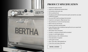The Bertha Professional X comes with two cooking racks, a drip tray and its own ashtray, to enable charcoal to be cleared easily. The Bertha X also has an optional stainless steel cabinet on wheels, for seamless portability.