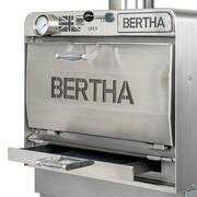 Grill Shelves: Bertha - The Bertha Professional X Charcoal Oven comes with one stainless steel solid bar grill shelf, which can be positioned at different heights to vary the intensity of the heat and the cooking temperature.