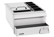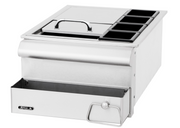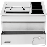 The 46cm Bar Caddy includes an ice bin with removable lid: removable condiment tray and towel holder to complement your outdoor island and make serving guests easy.