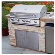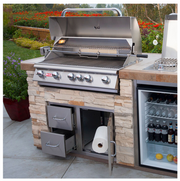 The  Door/Drawer Combo has 304 Grade 16 Gauge Stainless Steel, fully enclosed drawer components and double-lined doors for easy storage of grilling accessories and cleaning products.