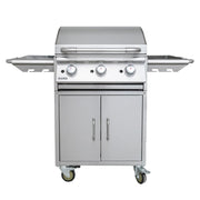 Equipped with a chromium-plated cooktop that sits upon three stainless steel burners, this gas barbecue cart can pump out 13.00 kWh of cooking power. With its wide cooking surface, you have more room to cook various types of food. Plus, the cart has side shelves to store your grilling accessories or your propane gas. Portable and easy to relocate, you can wheel around this barbecue cart anywhere outdoors! Be your own grilling master with this amazing addition to your outdoor kitchen!