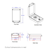 • Cut out dimensions: L 28.8 cm D 44.5 cm H 8.5 cm